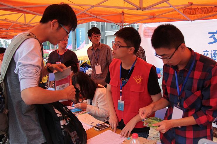 迎新生工作从9月6日中午开始,在学院领导关心指导,学院分团委、学办老师统筹安排下,院员工会、分团委团、科协通力合作,带领志愿者团队骨干成员开始了迎新工作。此次工作本着“一切为新生服务,让员工满意,让家长放心”的宗旨。虽然报到现场人来人往,但志愿者们分工明确,一切工作井然有序。其中,身着交院院服“黄T恤”的志愿者们更是得到了家长的一致肯定。