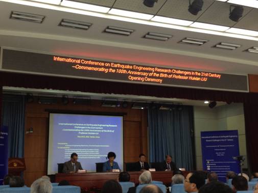 此次会议的初愿是为了纪念中国地震工程之父刘恢先教授,并缅怀刘恢先教授的两位生前挚友、美国地震工程之父George HOUSNER教授和杰出的美国地震工程科学家Joseph PENZIEN教授。刘玉辰副局长在致辞中指出,刘恢先教授无私奉献的科学精神和他高贵的人格激励着我们在科学发展的道路上探索前行。刘玉辰副局长强调,中国地震局始终把最大限度地减轻地震灾害损失作为防震减灾工作的根本宗旨,大力推进地震预报、震害防御、应急救援三大工作体系建设和科技创新,提高防震减灾能力,将和世界各国同行一起,加强国际交流与合作,大力促进地震科技进步,共同为减轻地震灾害、造福人类做出应有的贡献。于莎燕副省长回顾了刘恢先教授的学术贡献,鼓励大家要学习刘教授敢为人先,勇攀高峰的创新精神,学习他勤于实践,崇尚奋斗的工作作风,要把他的爱国情怀、科学精神和教育思想传承下去,并化为工作上的动力,为黑龙江乃至中国的防震减灾事业和经济社会发展做出积极的贡献。