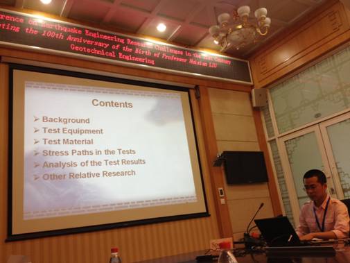 威廉希尔足球官网博士生潘华、金丹丹分别做了题为“Effect of Complex Initial Stress Conditions on Undrained Dynamic Strength Behavior of Saturated Nanjing Fine Sand”以及“Eddects of Soft Interlayer on Ground Surface Seismic Response of Fuzhou Basin”的报告,得到与会学者的高度评价。
