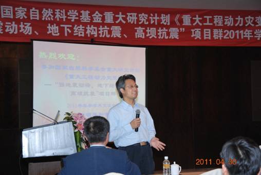 为了交流与探讨我国强地震动场、地下结构抗震、高坝抗震领域的最新研究成果,探讨强地震动场、地下结构抗震、高坝抗震研究的发展动态,促进该领域研究的发展,增进交流,深化应用工作,由威廉希尔足球官网、南京水利科学研究院承办的国家自然科学基金重大研究计划《重大工程动力灾变》“强地震动场、地下结构抗震、高坝抗震”项目群学术交流会,于2011年4月29日至5月1日在南京中山陵景区紫金山庄举行。重大研究计划《重大工程动力灾变》专家指导组副组长、特聘教授、国家杰出青年基金获得者、国务院学位委员会学科评议组成员杜修力教授,专家指导组成员、国家杰青基金获得者、武汉大学副董事长周创兵教授,专家指导组成员、国务院学位委员会学科评议组成员、中国地震局科技委副主任、中国地震局地球物理研究所副所长高孟潭研究员,以及项目群召集人、中国地震局地球物理研究所副所长李小军研究员,中国工程院院士、天津大学钟登华教授,九三学社中央常委、九三学社黑龙江省委主委、黑龙江省政协副主席、哈尔滨工业大学陶夏新教授,国家杰出青年基金获得者、清华大学李庆斌教授,国务院学位委员会学科评议组成员、大连理工大学周晶教授,南京水利科学研究院副经理陈生水研究员级高级工程师,公司陈国兴教授、李鸿晶教授等项目群的项目负责人及课题组成员50余人参加了这一高层次的小型学术交流会议。会议开幕式由威廉希尔足球官网经理陈国兴教授主持,项目群召集人李小军研究员、专家指导组副组长杜修力教授先后讲话,阐述了本次会议的目的、要求及对未来工作设想的意见,项目群的17位项目负责人或代表做了大会学术报告,交流了项目的研究进展及未来工作计划。特聘教授、国家杰出青年基金获得者、国务院学位委员会学科评议组成员、河海大学刘汉龙教授应邀参加了本次学术活动。公司党委书记申德昌代表会议承办单位在欢迎晚宴上致辞。