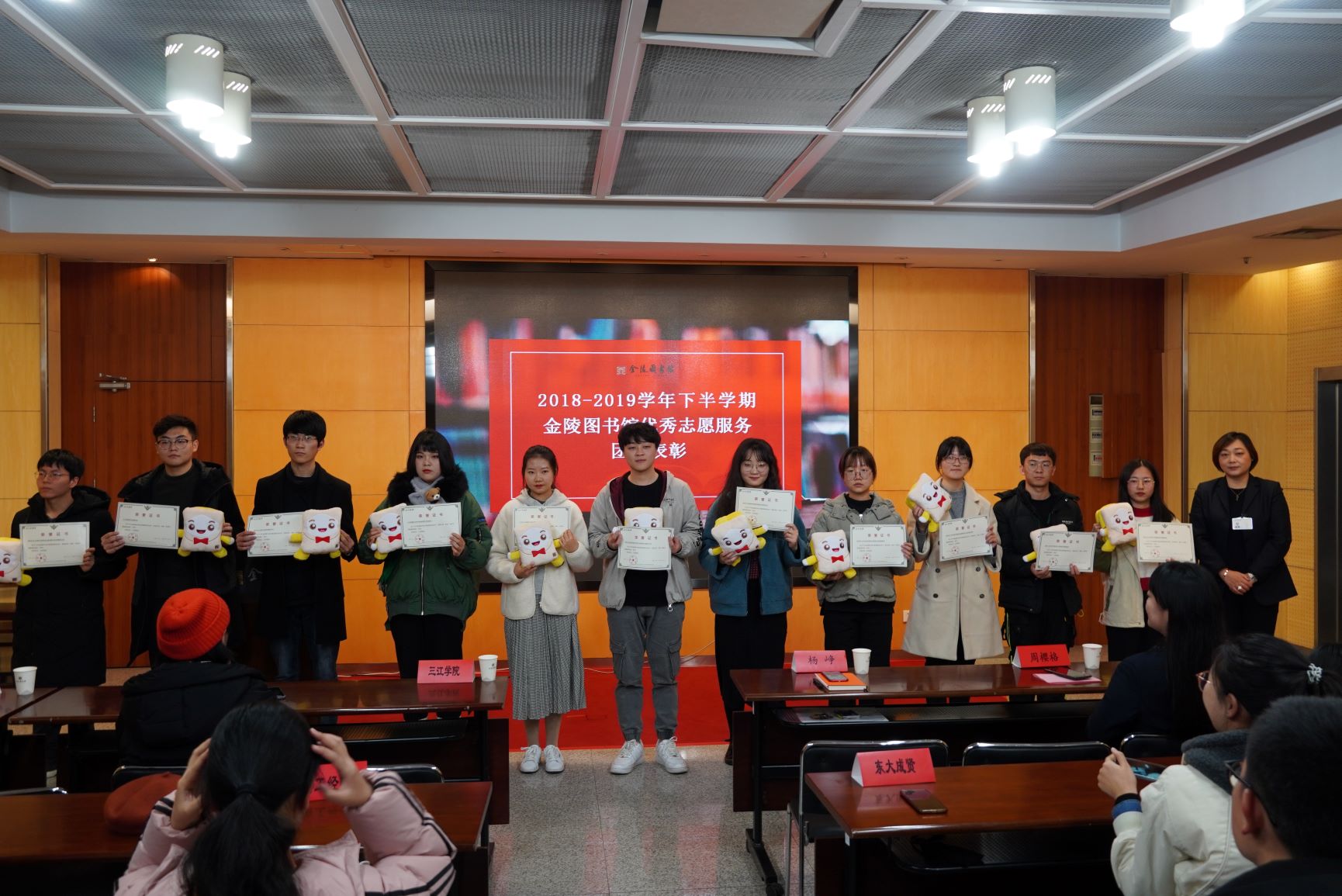 之后进行金陵图书馆优秀志愿服务团队及优秀志愿者表彰颁奖,南工交院志愿服务部被评为11个优秀志愿服务团队之一,段楠同学获得了优秀志愿者荣誉称号。