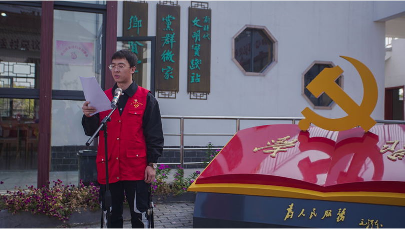 活动伊始,团员青年们在团旗前重温入团誓词,进一步增强团员青年的责任感和荣誉感,坚定青年投身乡村振兴的信心与决心。之后,青山社区党总支书记焦剑辉及南工交院志愿者代表何沛分别做了动员讲话,号召团员青年要积极投身乡村振兴,感知乡村、了解乡村、实践乡村。