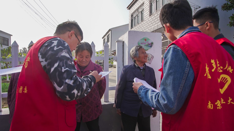 紧接着,南工交院志愿者们分为巡查组、宣传组、清洁组,分别开始了有条不紊的环境整治工作。三个志愿小组分别协助社区对辖区内的环境卫生等问题进行巡查。志愿者入户开展“农村人居环境卫生”、“垃圾分类”宣传和调查问卷工作,进一步检验社区环境整治成果,提高村民绿色生活意识。志愿者们帮助村民清扫院子的落叶,摆齐砖瓦,村民热情地与志愿者们聊天,表示感谢。