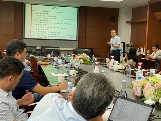 陈经理以《团队建设之问与思》为题,围绕学校“国内一流国际知名创业型大学”发展定位以及一体化团队建设的总体要求,结合学院发展的历史与现状以及面临的机遇和挑战,通过团队建设之“三问”(为什么建团队?建什么样的团队?如何建团队?)和“三思”(团队与学系的关系,基于团队的学院空间布局,团队建设之追求。),就学术团队建设的意义、内涵和路径与团队负责人进行了深度交流和互动。团队负责人陈国兴、李俊才、王旭东、王志华、徐洪钟等教授在发言中表示,将大力支持学院团队建设,并就如何促进教学科研深度融合、如何助力青年教师快速成长、如何建立科学的团队评价机制等提出了建设性的意见建议。最后,韩爱民书记做了总结发言,他对各位团队负责人为学院发展付出的努力和所作的贡献表示感谢,希望各个团队站位高、谋划远、发展好。