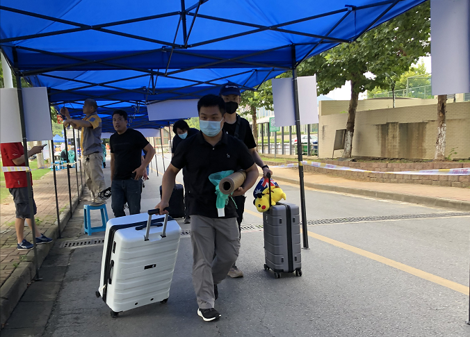 8月28日,公司江浦校区迎来2020年秋季学期首批返校员工。根据江苏省疫情防控和秋季学期开学返校工作的相关规定,员工在教师志愿者的帮助下搬运行李,并完成体温检测、出示苏康码、“i南工”身份审核等流程,之后乘坐校车前往宿舍。