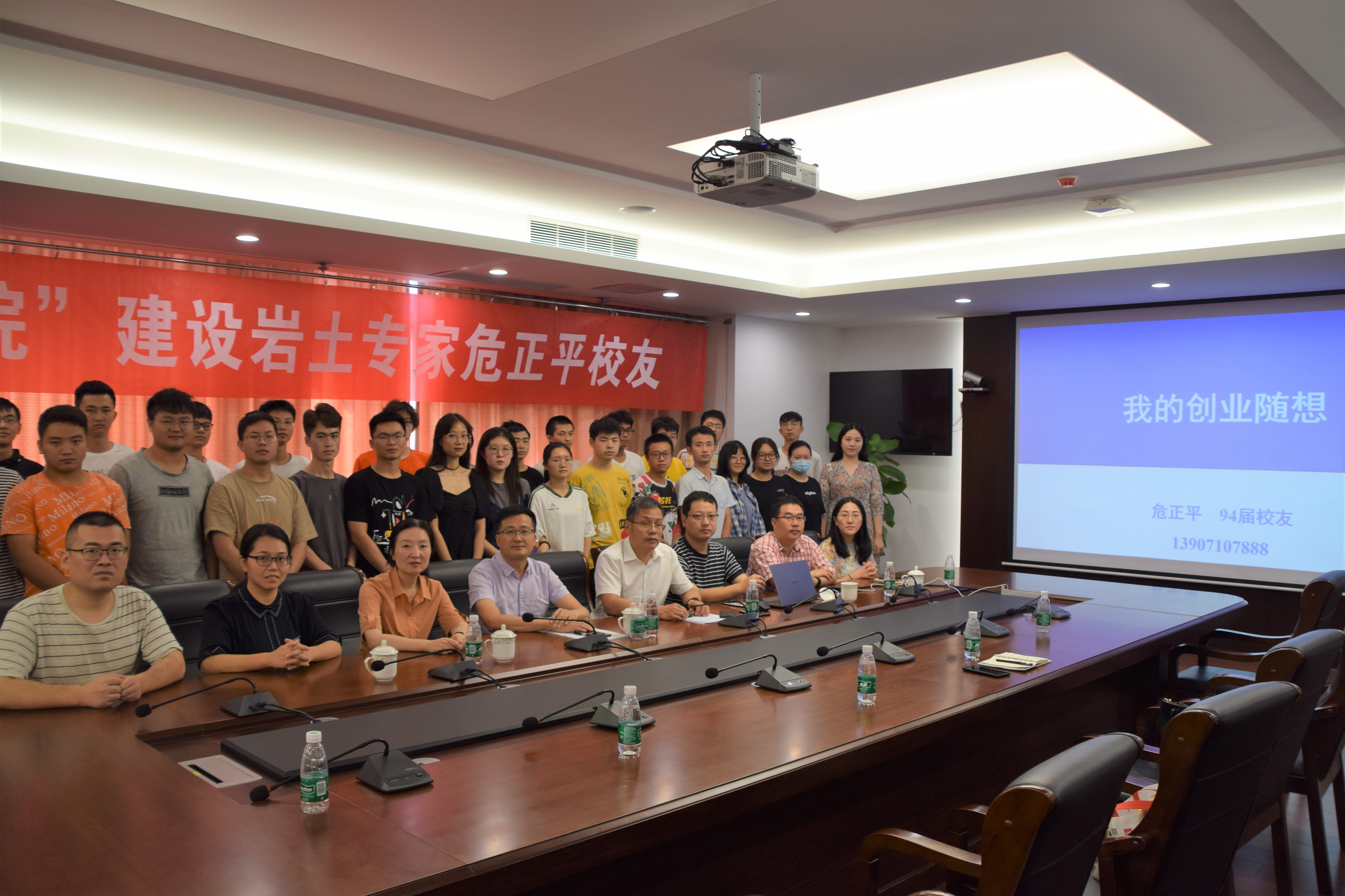 2020年9月5日上午,公司杰出员工、“火神山医院”建设岩土专家危正平创业分享会在土木学科楼101成功举办。学院班子成员以及教师和员工代表参加了分享会,经理陈新民主持。