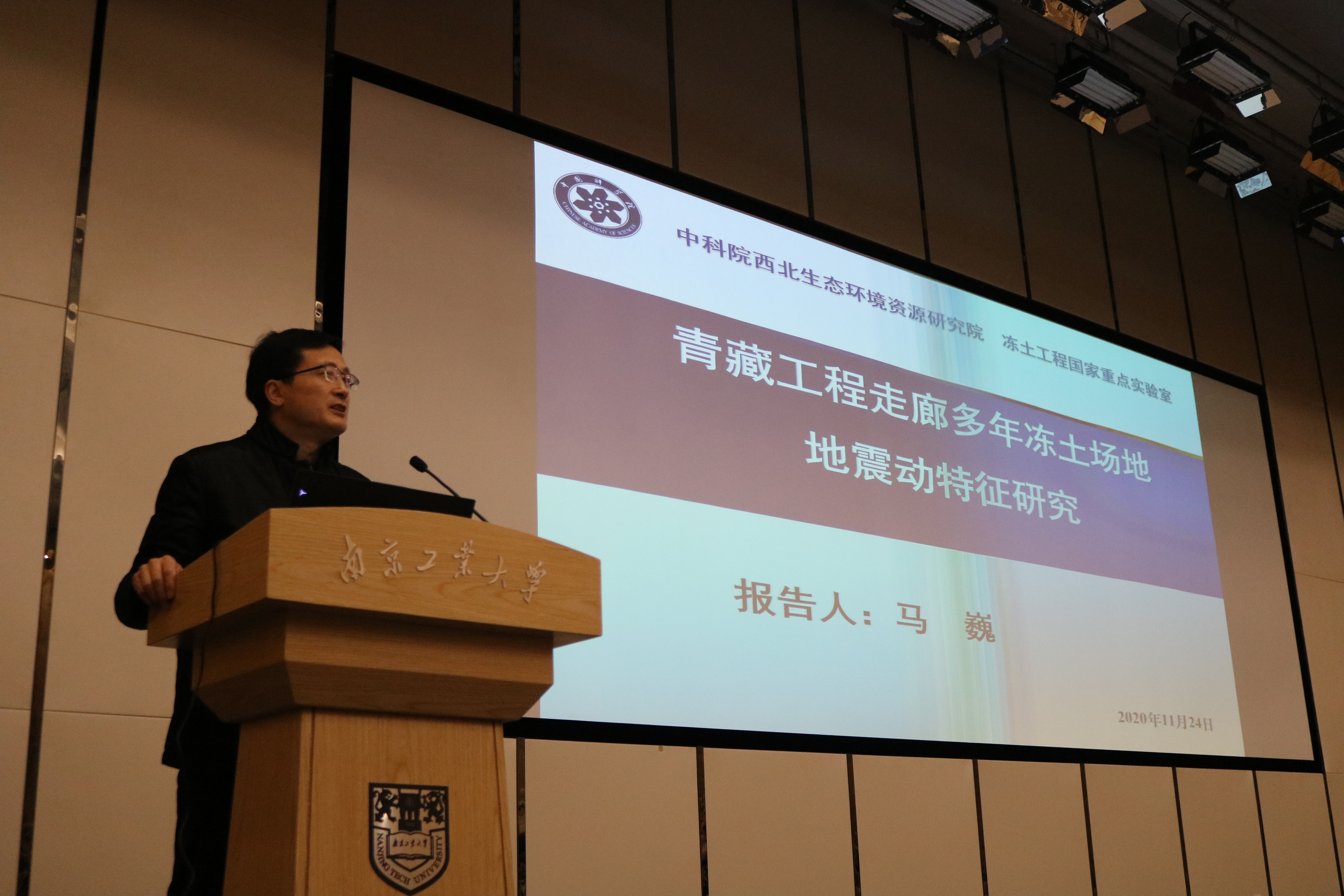 青藏工程走廊穿越长约550km的多年冻土区,宽度不到10km的冻土工程走廊内承载着青藏铁路、青藏公路、兰西拉光缆、青藏高压输变电线等重要生命线工程,该地区新构造运动强烈、活动断裂发育、强震多发,工程设施未来遭遇破坏性地震的风险极大。马巍院士在这一特殊区域长期开展地震危险性对比分析、融土动力非线性力学试验研究,系统建立了不同类型多年冻土场地地震动特征,为青藏工程走廊多年冻土区地震风险灾害评估、新建工程抗震设防等提供了重要参考,实现了青藏铁路从静态向动态设计的重要转变。马院士在讲座中深入浅出,举一反三,对冻土场地地震动特征进行了全面讲解和重点阐述,给在场师生带来了青藏工程走廊多年冻土场地地震动特征研究的最新成果。