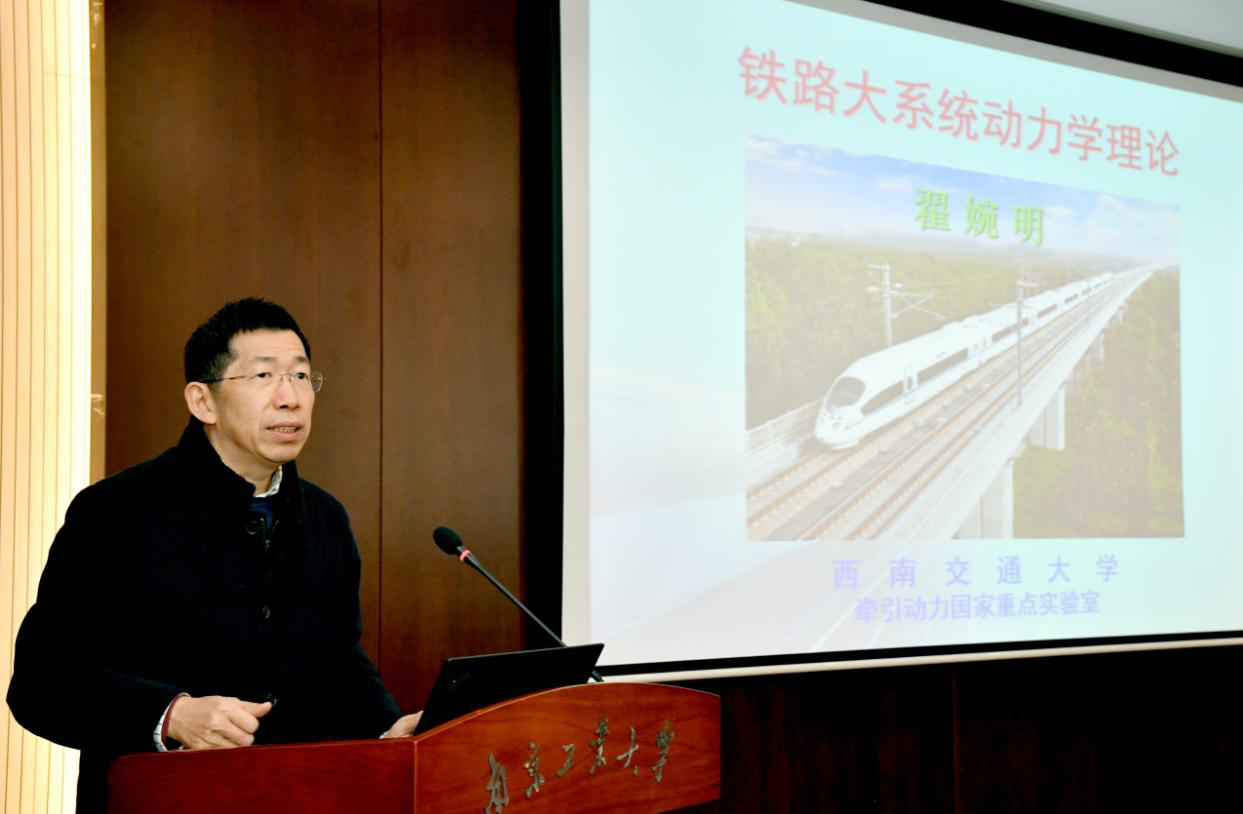 聘任仪式结束后,陈新民经理主持了轨道交通发展论坛报告会。翟婉明院士和佘才高教授分别以《铁路大系统动力学理论》、《打造城市轨道交通事业高质量发展的江苏样板》为题作了大会报告。翟婉明院士系统阐述了其科研团队在铁路大系统动力学理论、模型、算法方面取得的重要系列成果,展示了铁路大系统动力学理论在轨道交通车辆及基础设施结构设计和运营管理中的广泛应用;佘才高教授在报告中介绍了江苏轨道交通发展的成就和未来趋势,结合南京地铁建设,深入分析了未来城市轨道交通发展中的关键性问题。