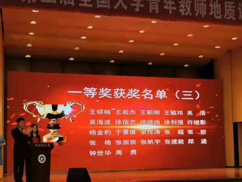 2021年5月15-16日,第三届全国大学青年教师地质课程教学比赛在河南理工大学举行,公司地质工程系三位教师参加比赛,均获得优异成绩,其中徐蓓艺老师荣获一等奖,刘昂和郑拓老师荣获二等奖。这是公司在此项教学比赛中获得的历史最好成绩。