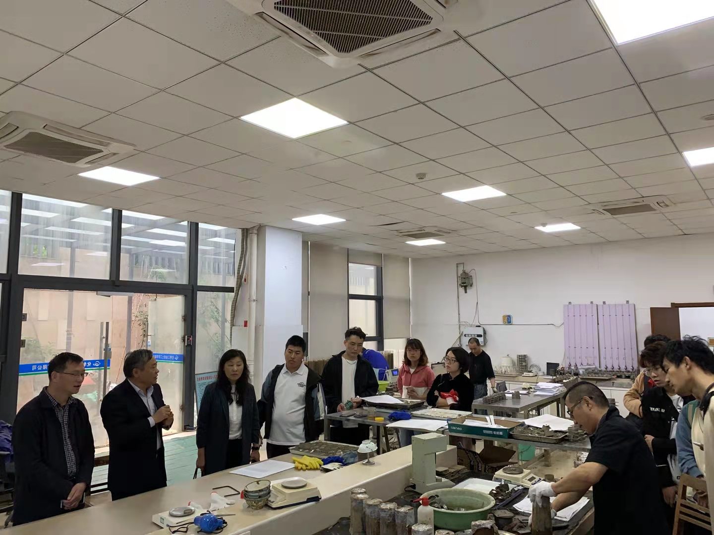 在化学工业岩土工程有限公司,技术总监尤苏南总工、员工何平经理带领同学们参观了化学岩土公司的实验室与办公区域,并与公司师生共同畅谈工作中的挑战与磨练,为同学们即将面对的职场生活提出许多宝贵经验;由周峰经理带领的教师团队对同学们提出了对地下专业毕业生的期望与要求。经过对施工单位的详细、深入考察,地下专业毕业生全面了解了岩土工程施工领域的工作环境和行业特点,对如何将课堂学习的工程知识落实到祖国大地上有了更加深刻的理解和感悟。