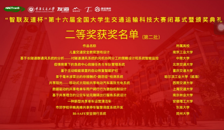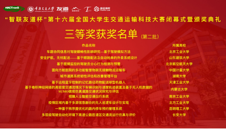 在2021年7月25日结束的“智联友道杯”第十六届全国老员工交通运输科技大赛上,威廉希尔足球官网员工团队取得了突破,获得了优异成绩。本届大赛共收到170所高校1130件作品,根据大赛章程及本届大赛实施方案,经大赛组委会审定,确定了85所高校共计184件作品进入决赛。