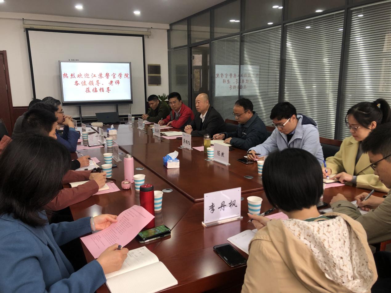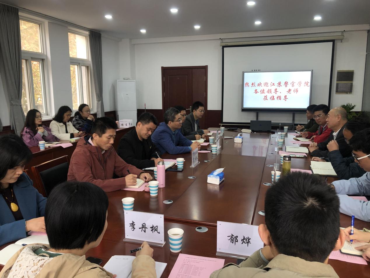 11月17日上午,江苏警官学院治安管理系谢海军主任(副厅级)、卜全民教授、龚鹏飞教授、科研处吴军华以及陈然等青年教师代表,应邀来公司,于天工楼505会议室举行座谈交流会。公司党委书记许翠梅、经理周峰、铁道工程系主任李永义、交通工程系主任边疆、卢守峰教授以及交通工程系教师代表出席交流会。会议由周峰经理主持。