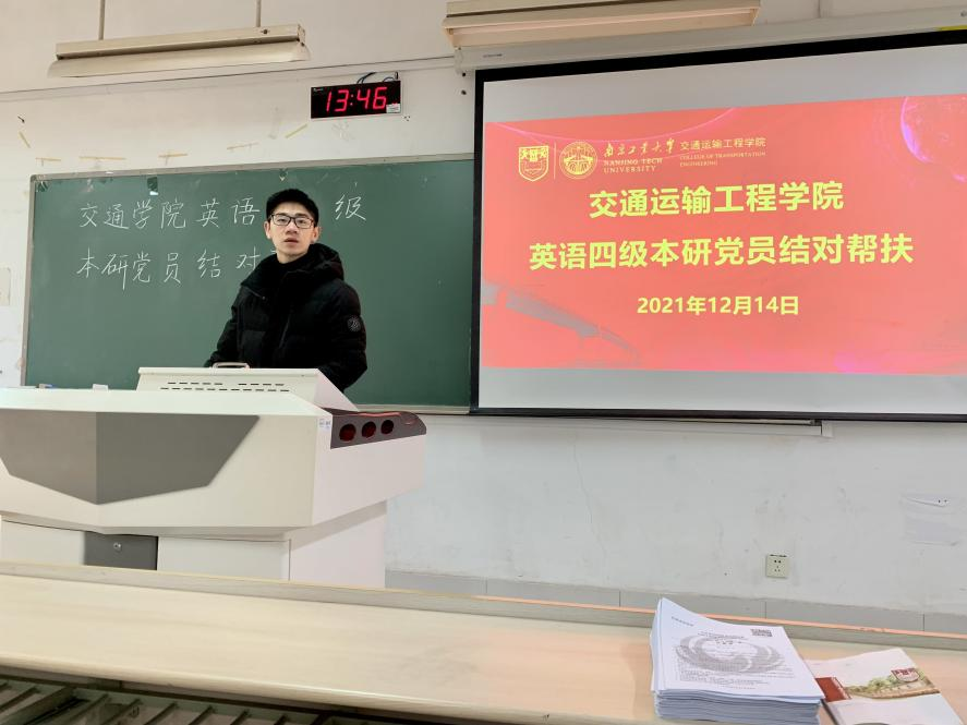 研究生党员以夯实党史学习教育成效为目标,认真践行“两在两同”做好结对帮扶,帮助学弟们提高英语学习成绩和英语四级通过率,依次给同学们详细介绍了未通过四级对就业及考研的重要影响,列举实例警醒同学们四级的重要性并分享了具体学习方法,并针对听力、阅读、作文等题型给出了详细的学习建议。袁老师分发学院准备的英语四级考试模拟卷,并预祝同学们在研究生学长的领航下顺利通过英语四级考试。