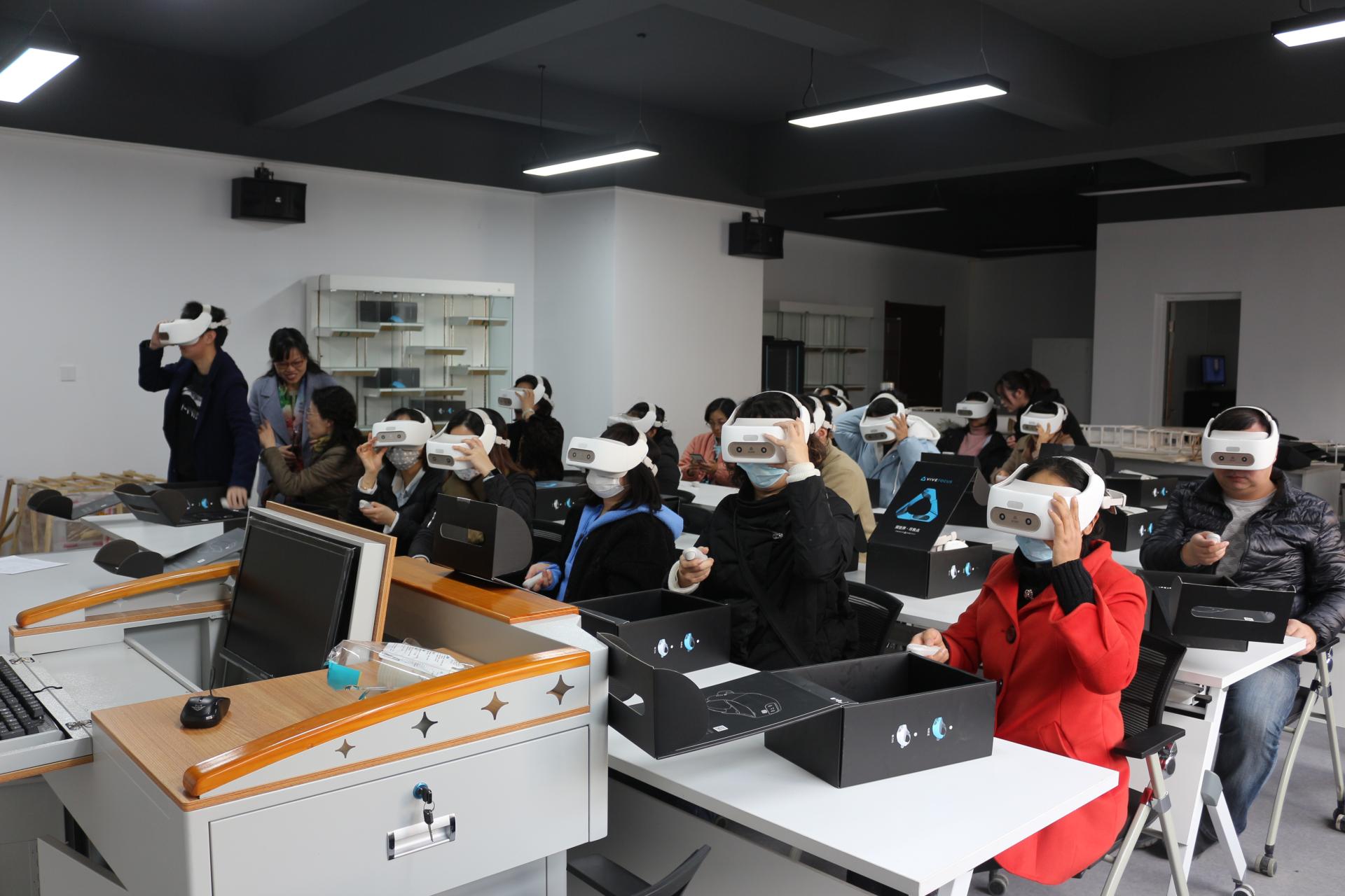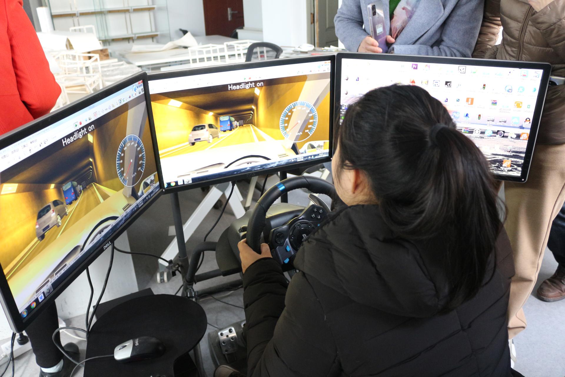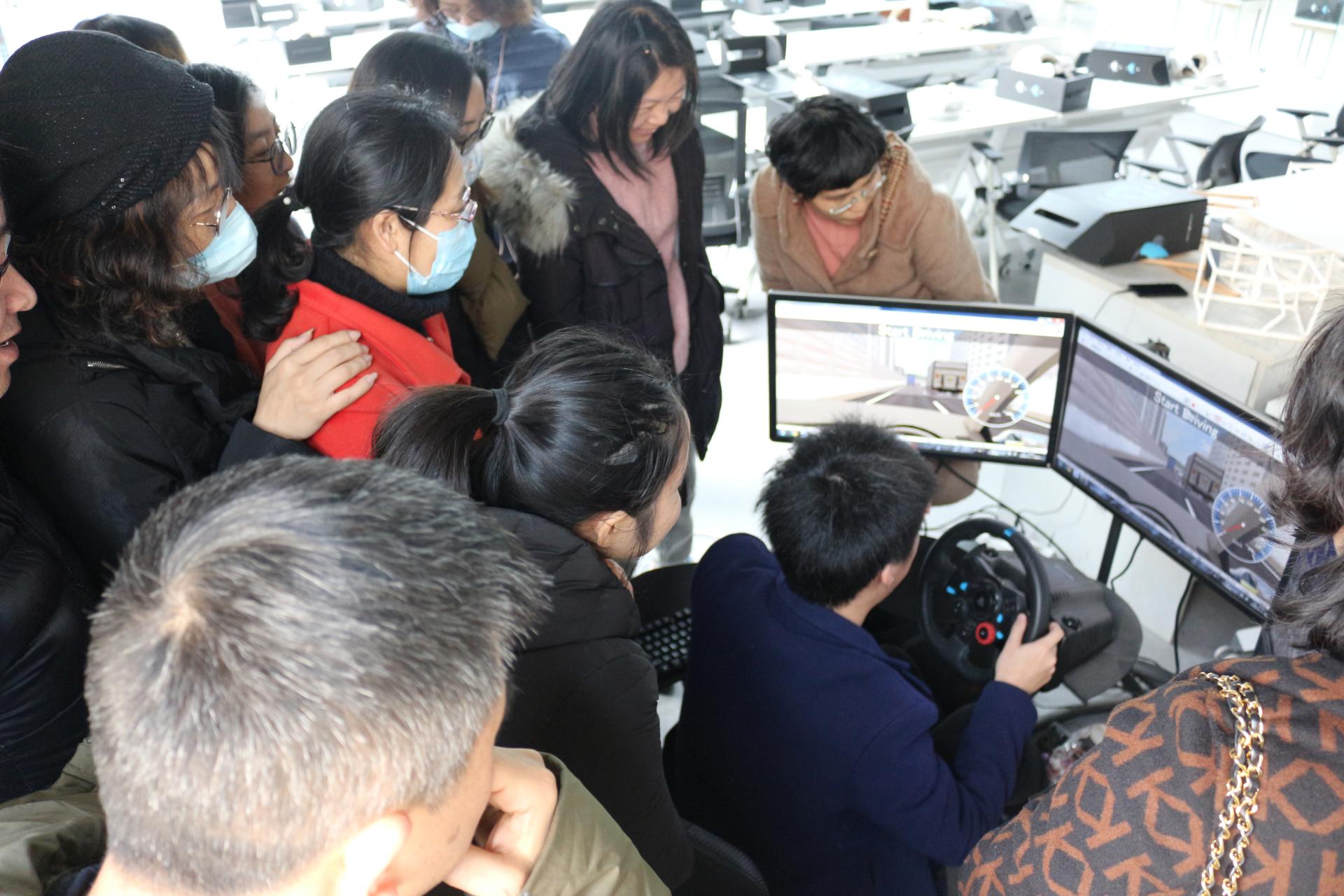 在虚拟仿真室,大家听取相关知识和使用方法后,带上VR眼镜,按照实验步骤,仿佛突破了时空的限制,身临其境来到了一个个虚拟的场景,探索科学的奥秘。老师们对这种成本较低、安全性高,参与性强的科技产品纷纷表示非常感兴趣,甚至现场探讨相关的技术开发合作。随后在模拟驾驶室,老师们亲身体验了模拟驾驶中不同天气、路况、环境下的感受,感叹这项技术直观性好,趣味性强,有亲和力,采集数据的实用前景非常广。
