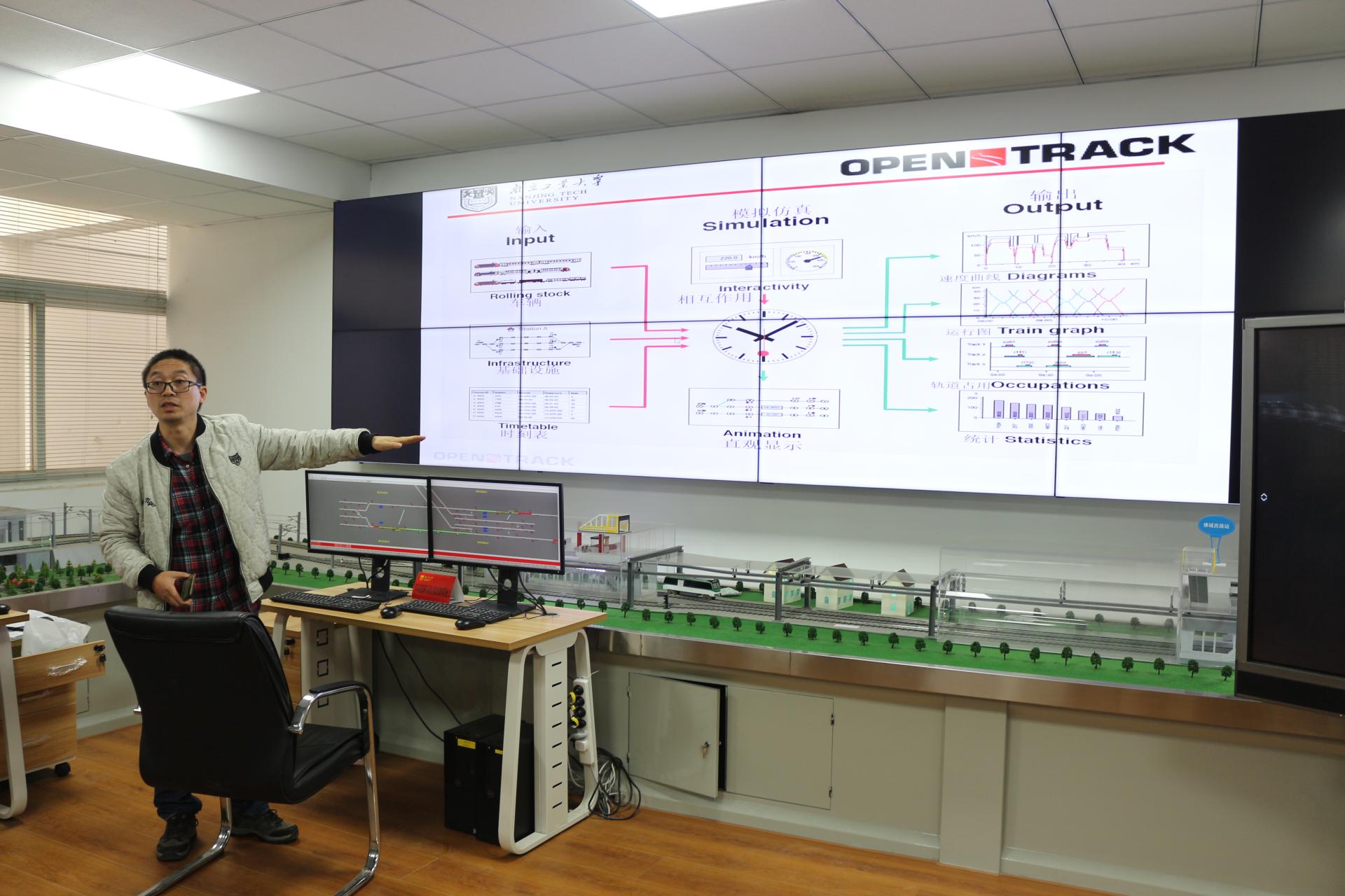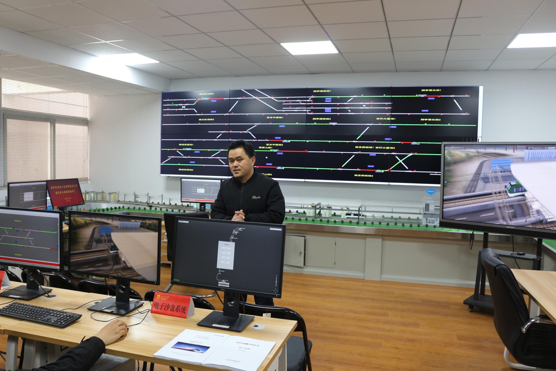 轨道交通模拟实验室,经理助理李永义老师和实验室负责人吕孟兴老师向大家介绍了实验室构成,实物沙盘中信号机、道岔、转辙机等设备,利用调度仿真系统、车站仿真系统、电子沙盘系统进行联合演练,生动形象地让参与者体验了南京地铁S1号线路具体运营模式。