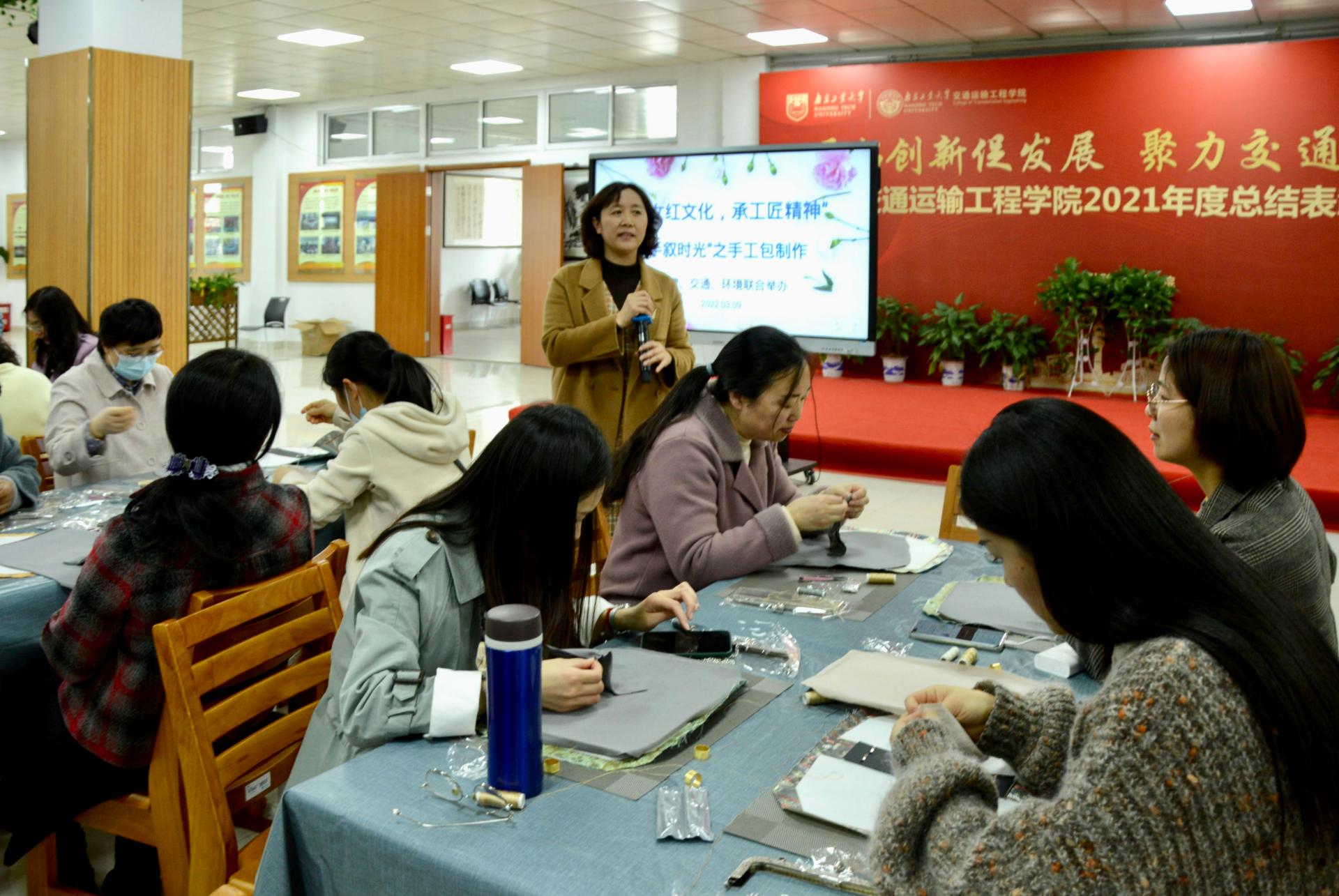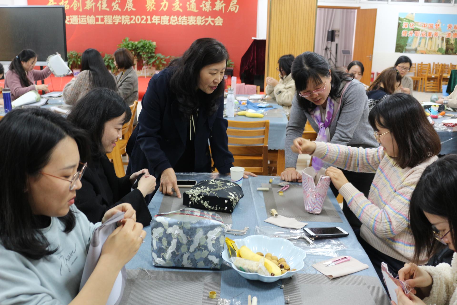 在这人间三月芳菲艳之际,为庆祝国际“三八”女神节,2022年3月9日下午,在校工会,交通、城建、环境公司党委的大力支持下,三个学院分工会联合举办“传女红文化,承工匠精神”-“手叙时光”之手工包制作活动,校工会主席彭亚辉、公司党委书记许翠梅等全校70余名女教职工在曼妙时光中体会匠心,发扬中国妇女心灵手巧、勤劳智慧的传统美德。
