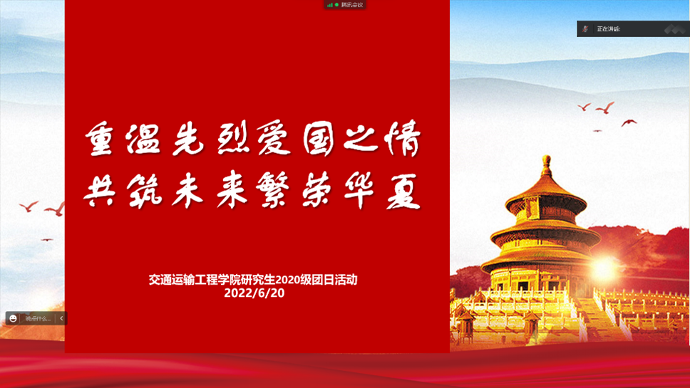 为庆祝中国共青团成立100周年,激发广大青年传承奋斗精神,永担青春使命,6月20日,交研2020级团支部开展了以“重温先烈爱国之情,共筑未来繁荣华夏”为主题的团日活动。