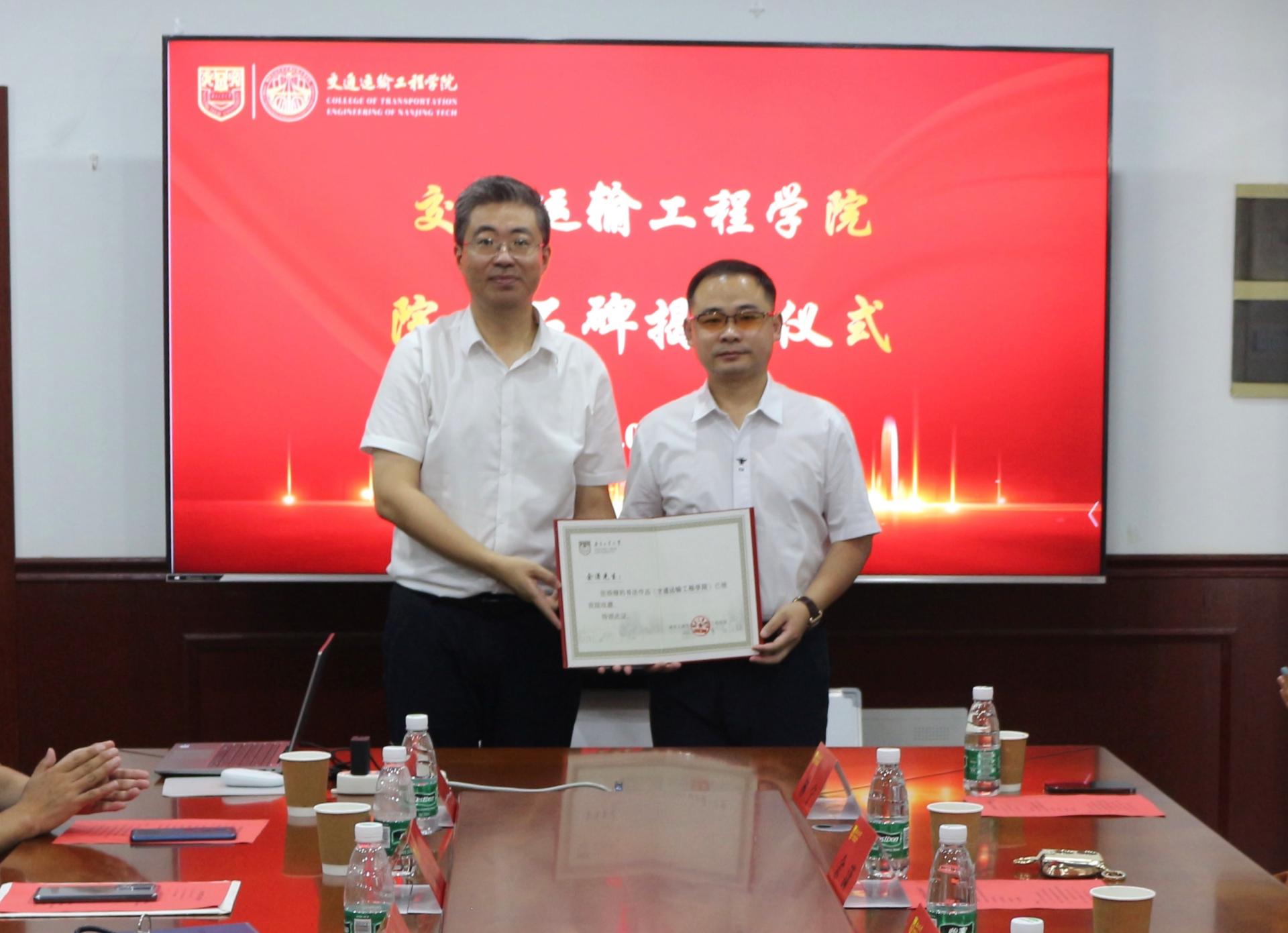8月1日上午,威廉希尔足球官网在天工楼505会议室和楼前广场隆重举行院名石碑落成揭幕仪式,该石碑系由宰金珉教授员工集体捐赠,取材于南京大校场机场的跑道基石,由青年书法家余潇所长题字、公司党委宣传部副部长杨芳题记和建筑公司党委副书记林宁设计。