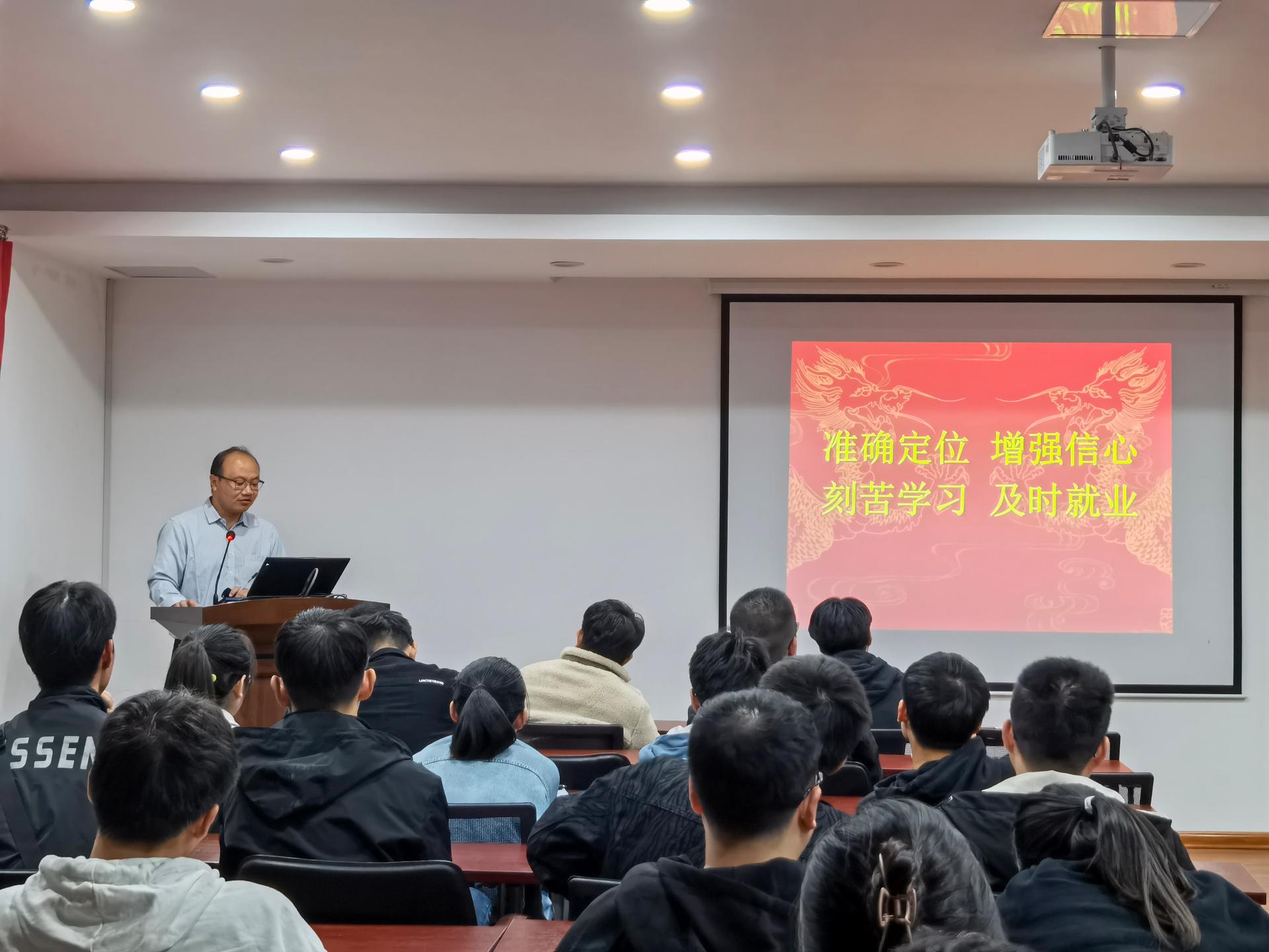 徐元龙副书记从毕业生求职压力入手,聚焦当前疫情常态化形势下的就业现状及趋势,通过往年就业数据和案例向同学们强调了黄金秋招季的重要性,做到认清形势,找准定位,主动出击,脚踏实地落实就业,践行专业使命,在今后岗位上持续创造人生价值。