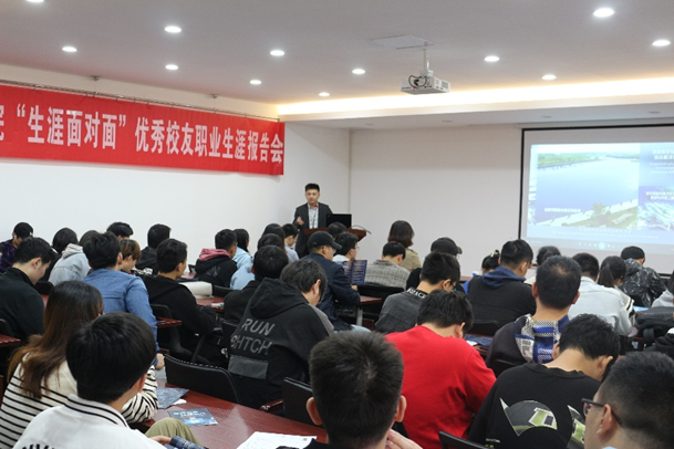 人力资源总监吉莉莉从苏交科集团的发展历程、企业文化、组织构架、产业结构、人员需求和职业前景等几个方面向同学们介绍了苏交科集团人才培养机制。员工梁海丰、孙佳佳和冒佩文分别通过自己的亲身经历与同学们分享了从校园生活到工作岗位,从求职经验到入职体验,再到形成自己成熟的职业生涯路径的心路历程。