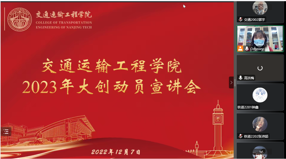 会议伊始,由高洪梅副经理致辞,高经理介绍了大创申报的详细流程和所涉及的比赛项目,鼓励同学们以研促学,在大创中持续提升学习能力与水平。随后,康楠老师和荣雪宁老师进行动员并就所带题目进行重点讲解和队员招募,现场气氛热烈。最后,2022年优秀省级团队代表交通2002郭宇同学进行经验分享。