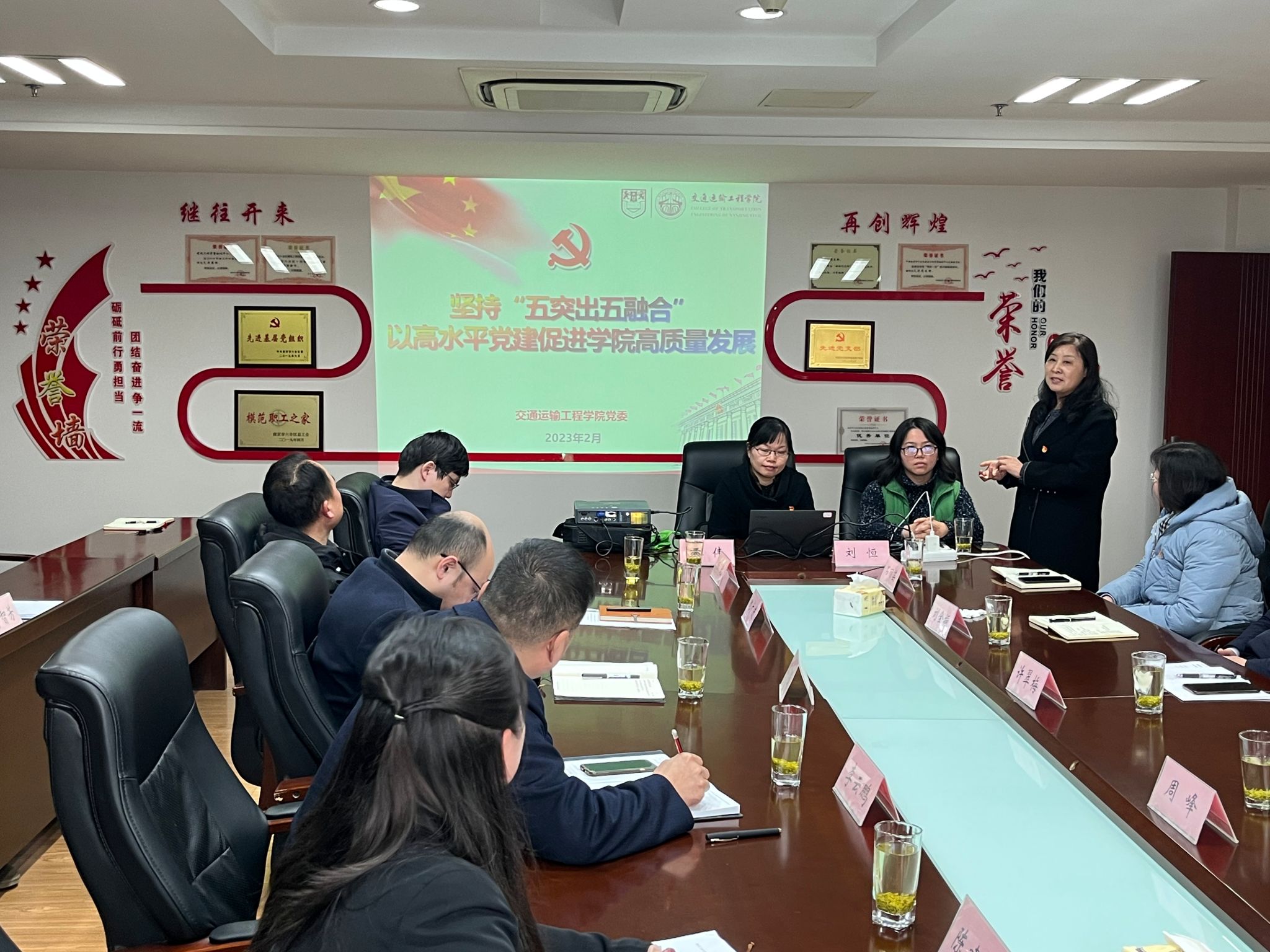 周峰经理详细介绍了威廉希尔足球官网发展历程、技术研发以及人才培养等情况,表达了业务共学共进、科学技术合作、红色资源共享等方面合作的意向。许翠梅书记从公司党委围绕高校立德树人根本任务,通过“五突出五融合”党建理念,介绍了党建与业务如何相融相促的经验。六合区城乡建设局党委委员李云鹏同志就区城乡建设局党建引领业务的工作经验进行交流,副局长郭小强同志就质量监管、工程案例与科研合作方面进行了深入交流,期待与威廉希尔足球官网相关学院在人才交流培养、校地融合、科研创新等方面有深入合作。