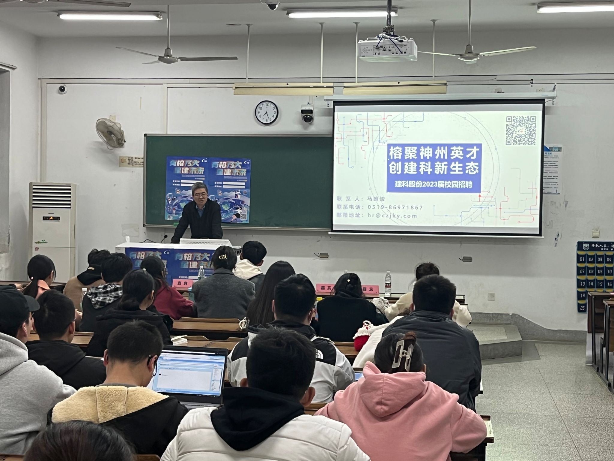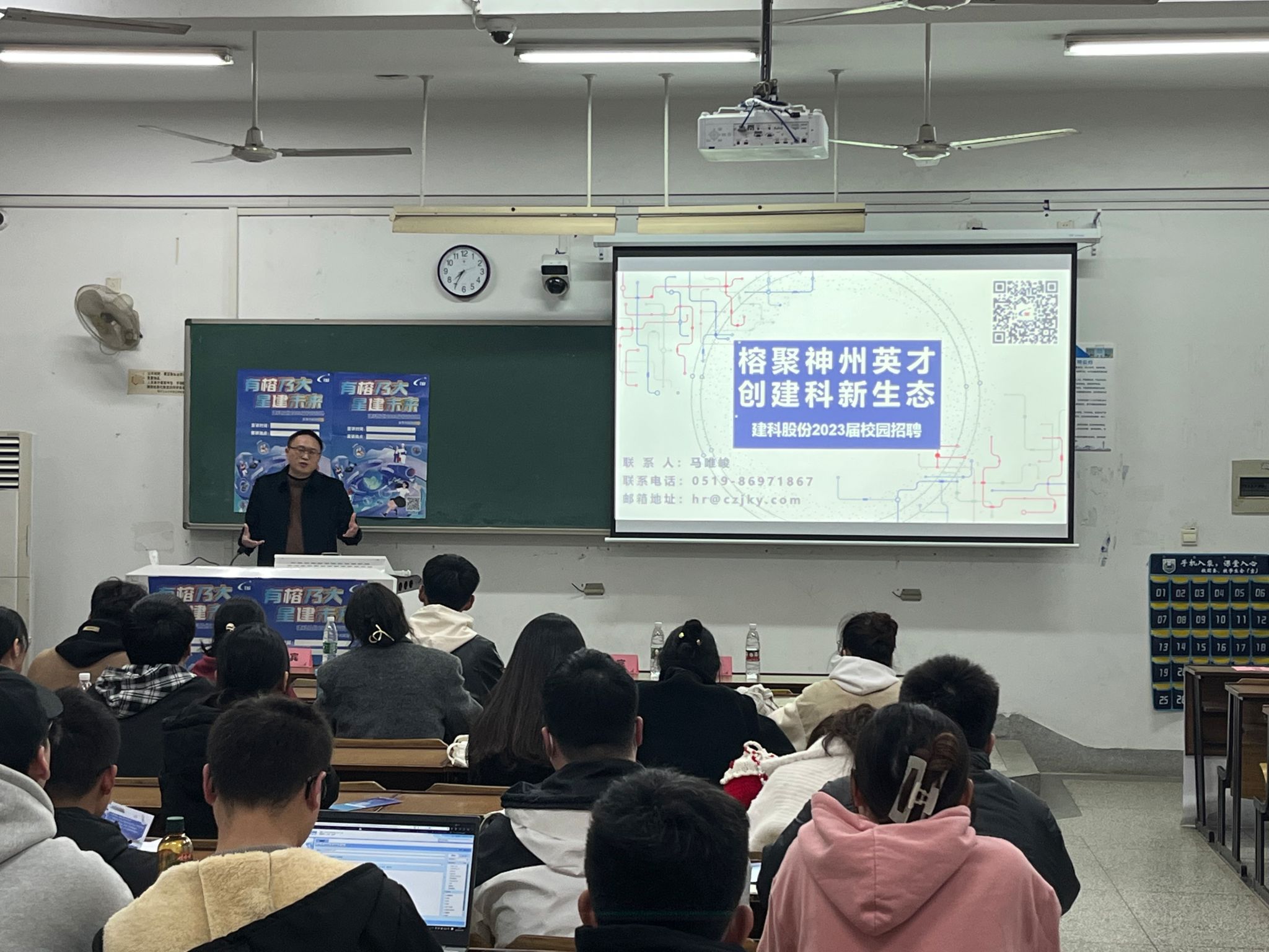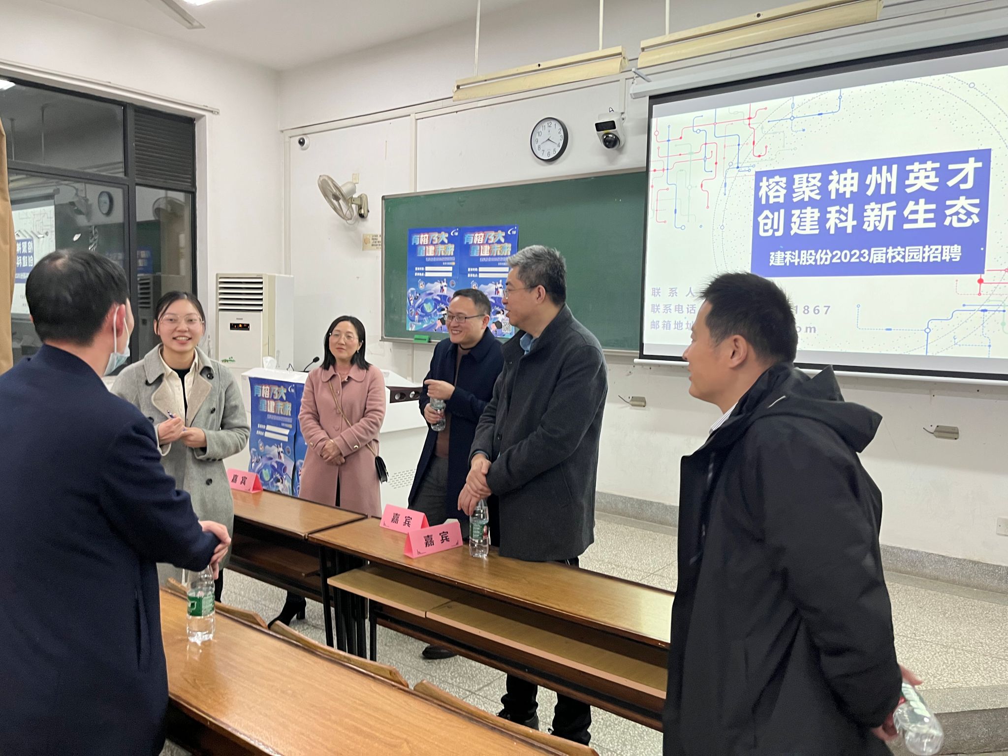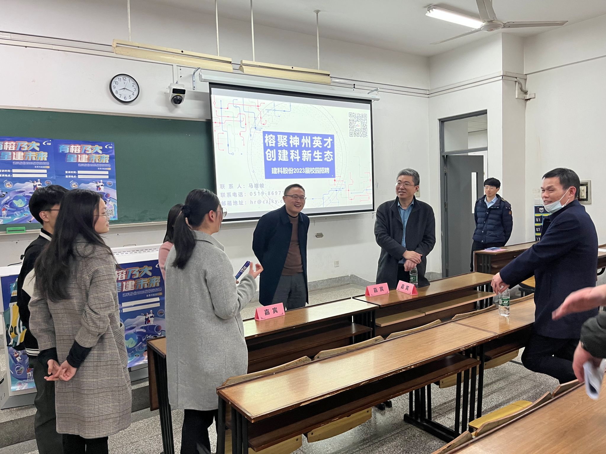 为了进一步做好毕业生就业服务,3月2日晚,威廉希尔足球官网经理周峰、党委副书记刘全振、副经理高洪梅一行走进常州市建筑科学研究院集团股份有限公司招聘宣讲会现场为员工提供就业指导和服务。常州建科院综合加固维保事业部部长许宽、江苏鼎达建筑新技术有限公司副总经理陈浩锋、招聘经理马唯峻参加宣讲会。