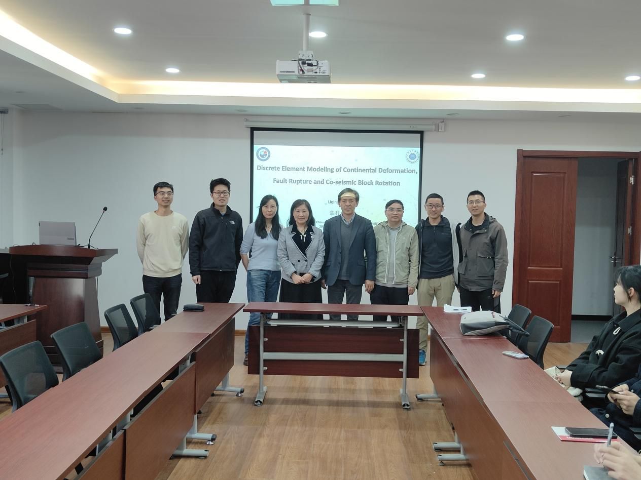 许翠梅书记代表学院热烈欢迎两位专家来公司交流,介绍了公司地质工程专业和防灾减灾科学与工程专业近年来取得的科研成果。焦利青研究员详细介绍了离散元方法和数值模拟结果,模拟结果可以对理解断裂的产生、传播和破裂提供重要参考,并从三个不同类型的变形进行了成果的展示,包括大规模大陆板块变形、相对小规模的挤压变形以及短时间尺度的断层破裂过程。随后,与会师生就报告内容和各自研究方向与两位专家进行了深入的讨论。最后,张岳桥教授和焦利青研究员结合自身科研经历给与会的青年教师和研究生、本科生提出了宝贵建议。