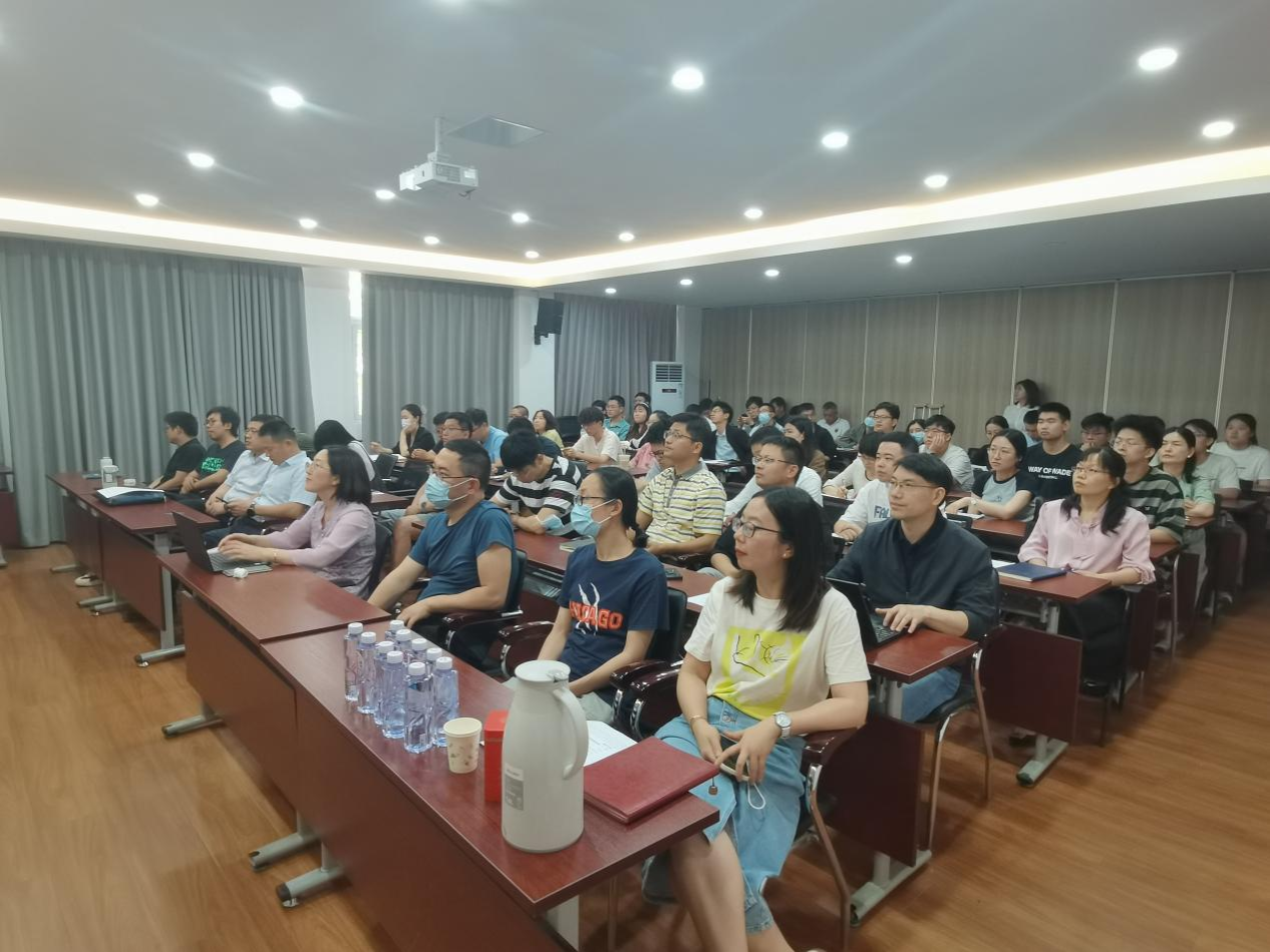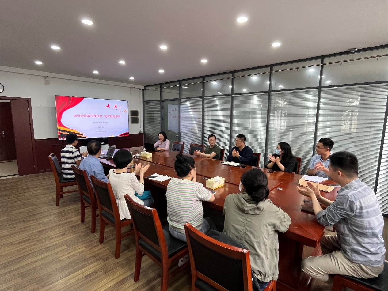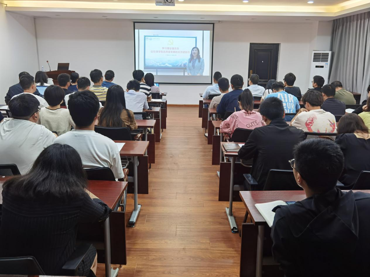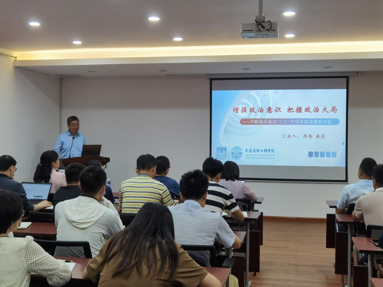 许翠梅书记以“学习理论强党性,以引领学院高质量发展实效建新功”为题,从三个方面解读了习近平新时代中国特色社会主义思想的深刻内涵,并汇报学院主题教育进展及学院推进党建高质量发展的理念和举措。周峰经理围绕“深刻领悟政治三力,引领学院高质量发展”,就如何提高政治判断力、政治领悟力、政治执行力系统介绍了相关方法,结合学院高质量发展的开展提出了期望。