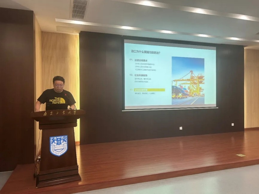 江苏交科能源科技发展有限公司经理史奥运以“智能化在港口污染防治中的应用”为主题,立足绿色发展,以政策背景为导入,介绍了船舶污染物智能接收设施、智能岸电、智能喷淋设施三种不同智能化设施在港口污染防治中的应用,包括工作原理、工作流程和信息化监测等内容。
