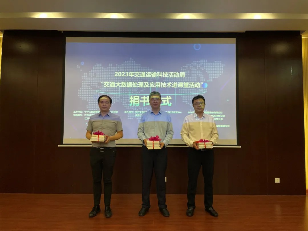 为了积极响应交通科普知识的主题,倡导校园“全民阅读”,大数据研发中心向威廉希尔足球官网捐赠了交通大数据系列书籍。现场捐赠仪式由江苏省交通运输厅科技处副处长范晓锋、苏交科集团股份有限公司智慧交通研究所所长张日民作为大数据研发中心代表进行了捐赠,周峰经理代表学院接受了捐书。希望借助交通大数据书籍的主题式阅读,帮助员工开启一场交通知识的探索之旅。