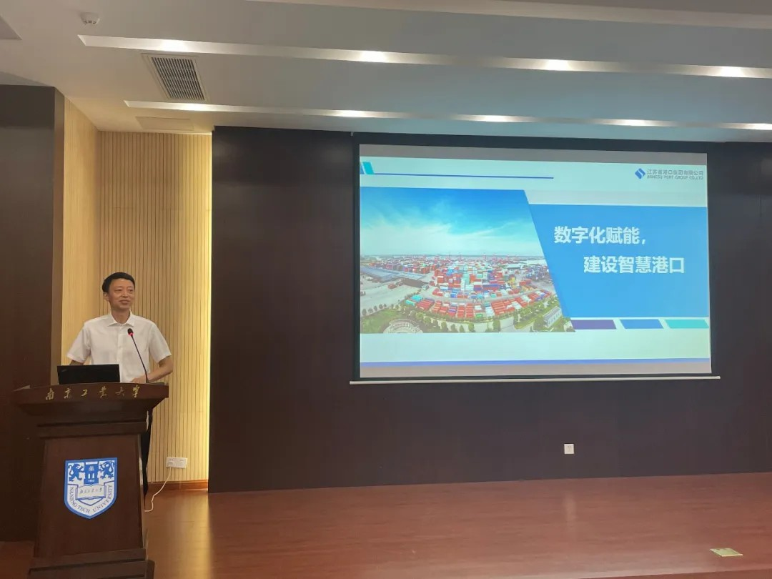 江苏省港口集团信息公司王明远副总经理王明远分享了“数字化赋能 建设智慧港口”,以港口的重要性和地位为切入口,依托港口集团的信息化发展战略,介绍了智慧港口数字化转型的方向,并分享了在生产、管理、服务等方面的八大实践成果和解决方案。