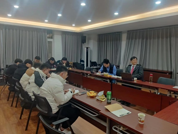 1月23日晚上,王海彦教授邀请中铁十八局集团有限公司首席专家(隧道)兼科技创新部总经理王立川教授在天工楼530会议室,以“培养新时代隧道人才的责任与担当”为主题,从做人、做事、做学问三个方面为土木水利专业部分研究生上了一堂精彩的思政课。首先,王立川教授和研究生们分别从生活、学习、科研三个角度辩证地对2023年的学习和科研的历程与成绩进行了口头总结和交流。之后,王立川教授言简意赅地指出大家在学研方法和时间上存在的不足之处,并基于自己的工作笔记介绍了个人的研学经验。此外,他还强调了隧道人才在国家发展中的重要地位,鼓励员工们要树立远大理想,勇于担当,为建设交通强国贡献自己的力量。最后,王立川教授带领大家领学了《弟子规》,勉励大家在日常生活中取其精华而用之。