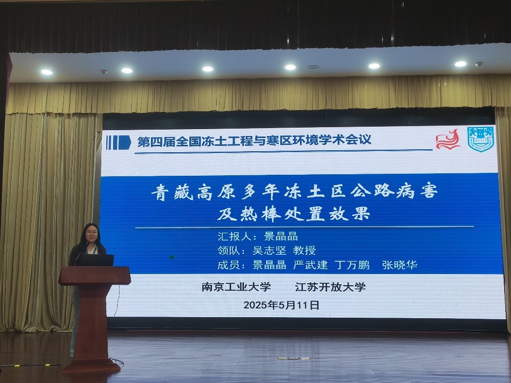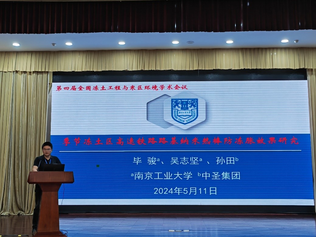 在会议报告环节,毕骏副教授作了题为“季节冻土区高速铁路路基纳米热棒防冻胀效果研究”的分会场报告,王鹏宇老师作了“深部岩体节理细观接触行为定量表征和动态监测研究”的分会场报告,景晶晶博士作了“青藏高原地区冻土路基病害与热棒技术处置效果”的分会场报告,以上报告得到了与会专家学者的高度评价和热烈关注。