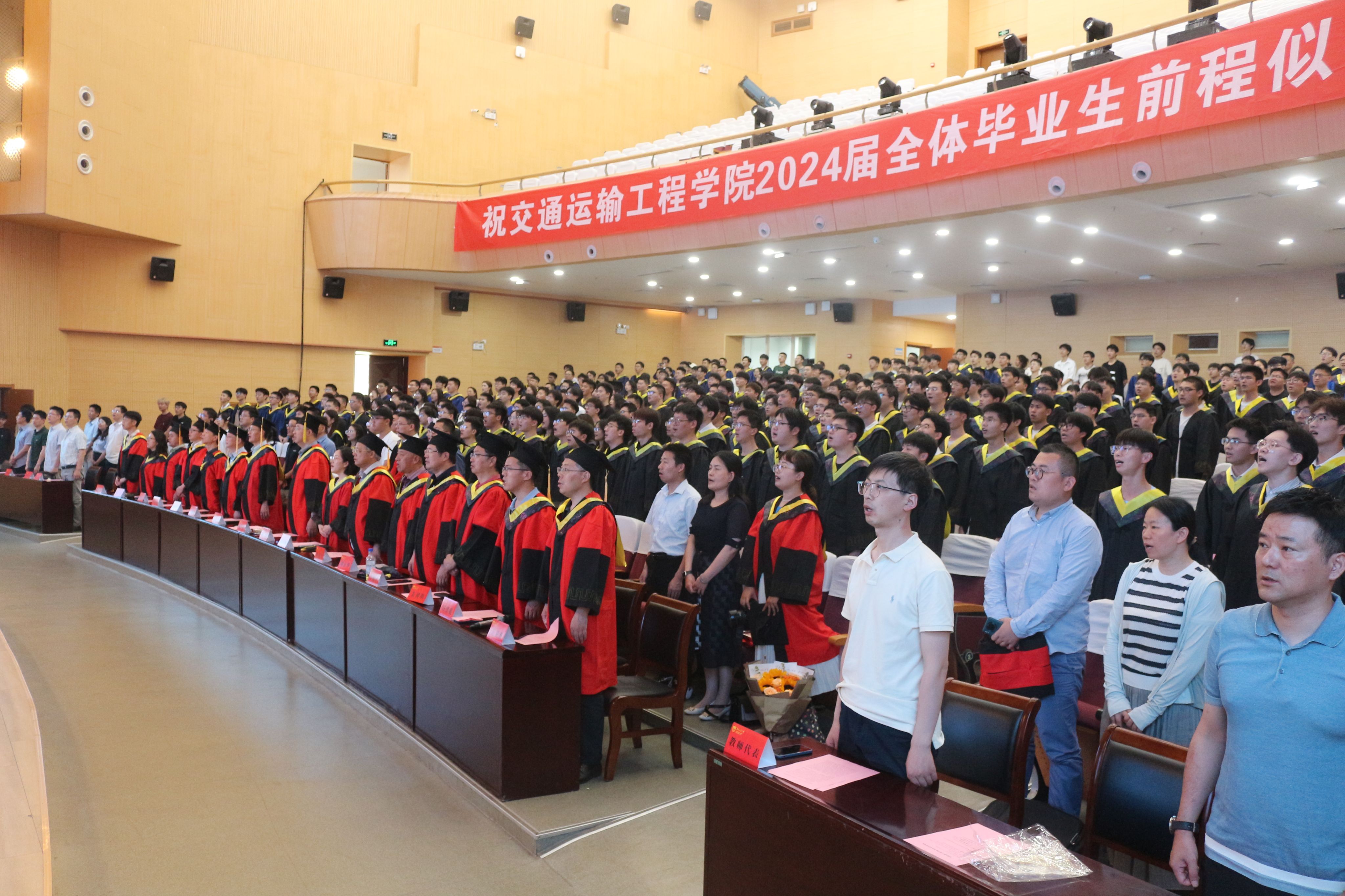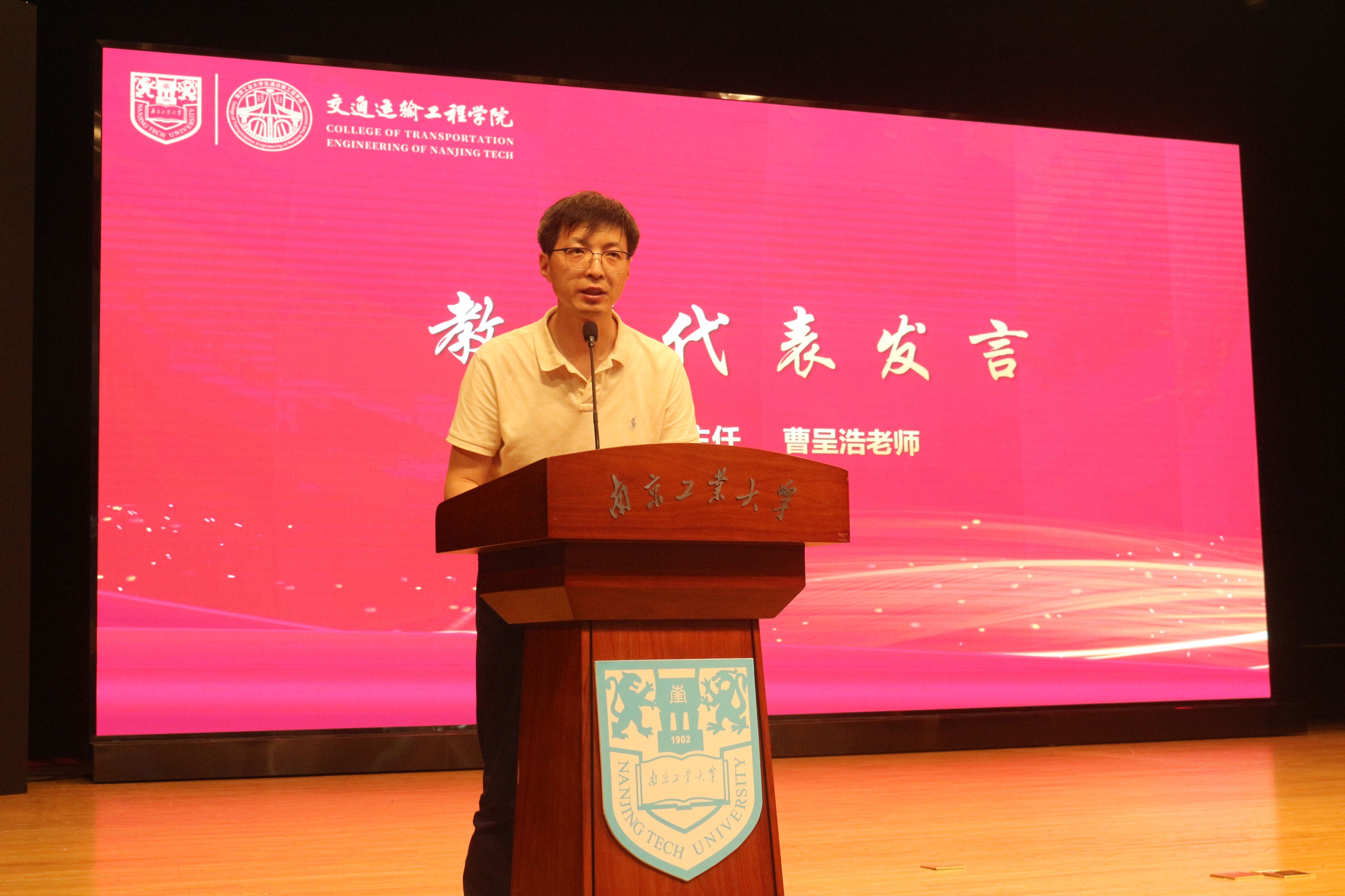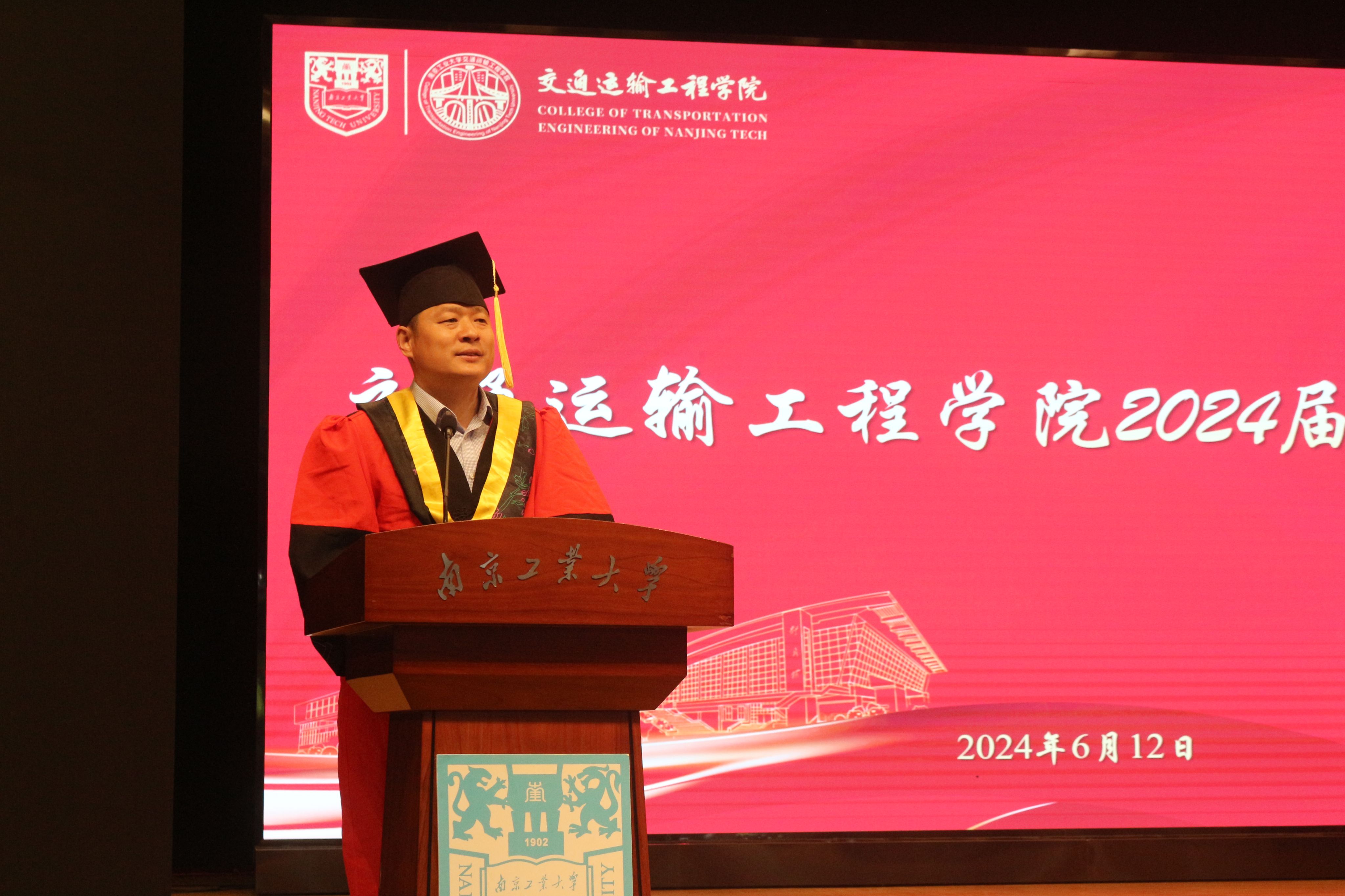 颂情谊,惜别离。毕业生代表交通2003班冯斯特追忆四年奋斗时光,以“莫愁前路无知己,天下谁人不识君”慰藉和激励即将远行的同学们。交研21级储城鑫借“长风破浪会有时,直挂云帆济沧海”祝愿同学们乘风破浪,创造辉煌。毕业生家长代表地下2002施泽轩父亲施健先生向学校学院的领导、老师对孩子们的辛勤付出表示感谢,并祝愿毕业生在人生的大舞台上秀出自己的风采。教师代表地质2001班主任曹呈浩老师号召交院学子要以“千淘万漉虽辛苦、吹尽狂沙始到金”的恒心顽强奋斗。
