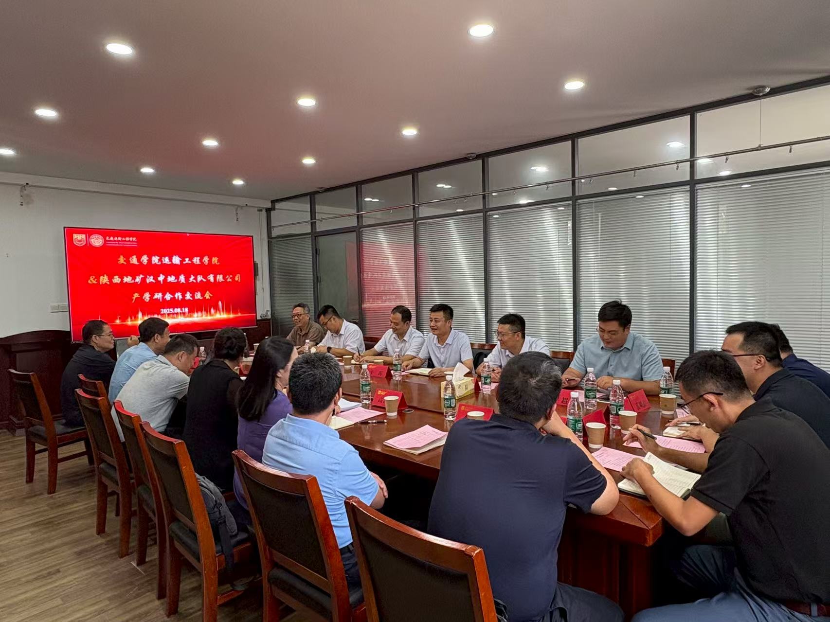 8月18日下午,陕西地矿汉中地质大队有限公司总经理辛晖一行至交通运输工程学院开展地质工程及防灾领域的产学研合作交流,公司党委书记许翠梅、经理周峰及相关人员参加交流会,会议由学院副经理高洪梅主持。