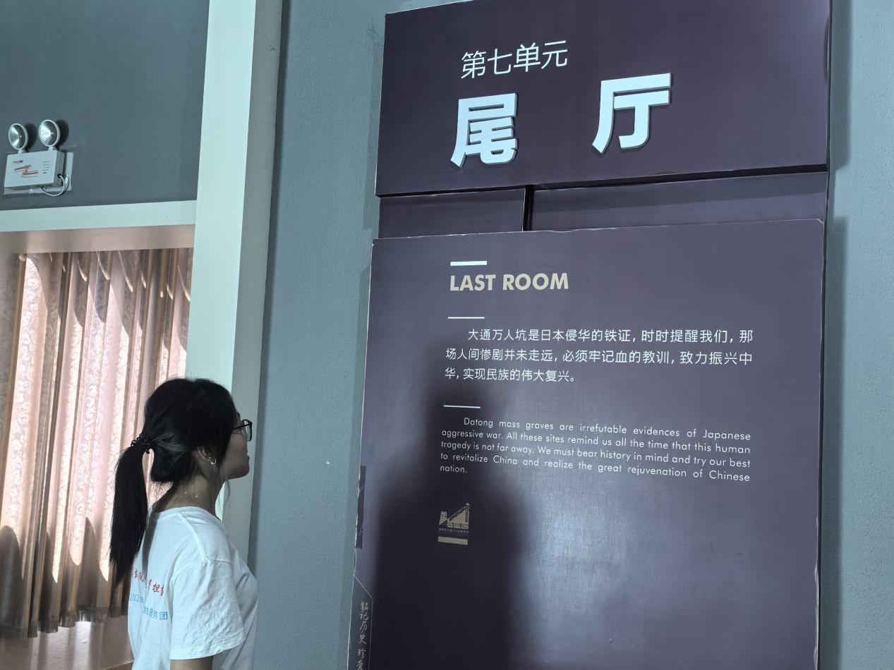 实践团研学参观大通万人坑教育馆(侵华日军淮南罪证遗址陈列馆)。在大通万人坑遗址前,面对累累白骨和珍贵史料,全体队员肃立默哀。“今年是中国人民抗日战争暨世界反法西斯战争胜利80周年,作为新时代交通人,我们更要铭记历史,用科技创新守护来之不易的和平发展。”实践团成员周倩茹在实践笔记中写道。